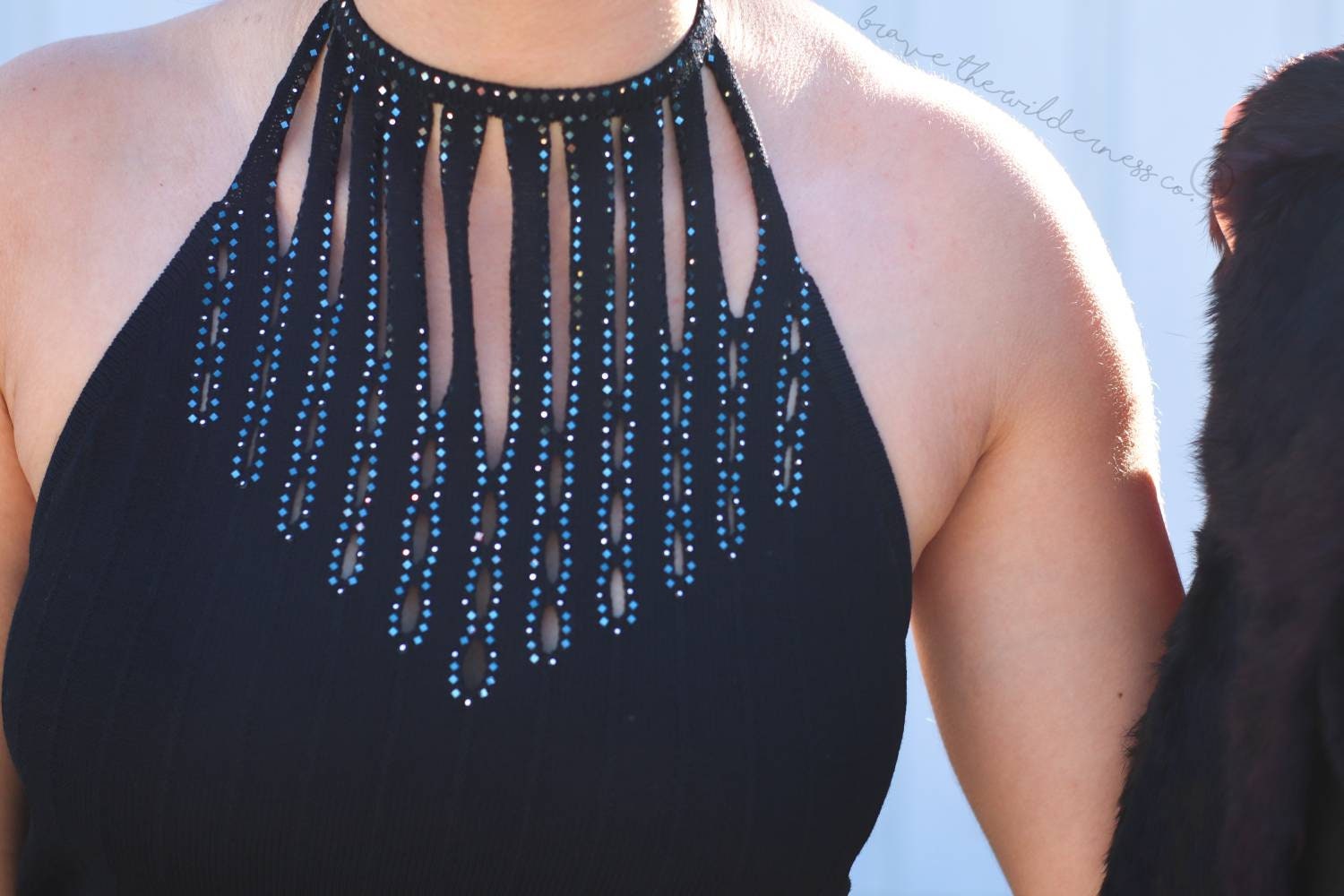 Little Black Dress - Vintage St John Evening Short Knit Dress High Neck Open Back